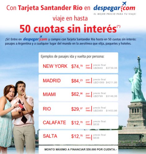 Le informamos que para adelantos en el exterior, el lmite mximo mensual por tarjeta es de US en pases limtrofes y hasta. Ya es posible hasta viajar a Nueva York con cuotas sin inters. Santander rio tag - m Viajes en cuotas, una oportunidad que termina el mircoles de junio.